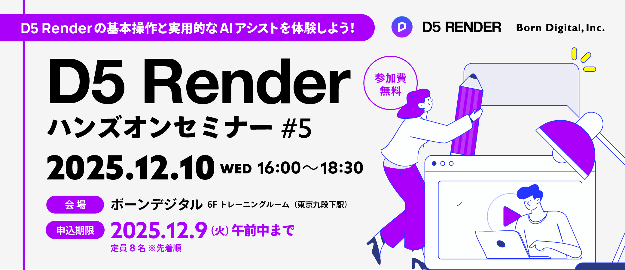 | 対象 | D5 Renderに興味のある方、建築ビジュアライゼーションに興味のある方 |