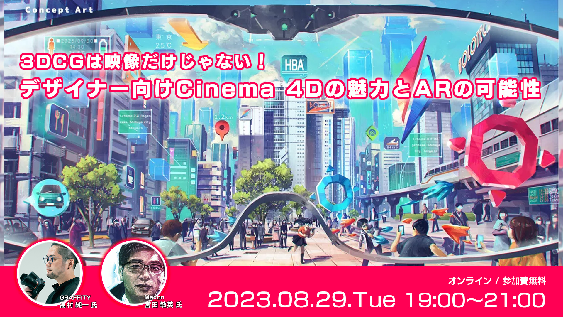 本セミナーでは、実際の制作現場で活躍するプロのARデザイナーと共にCinema 4Dのデザインツールとしての可能性を探るセッションをご用意しています。