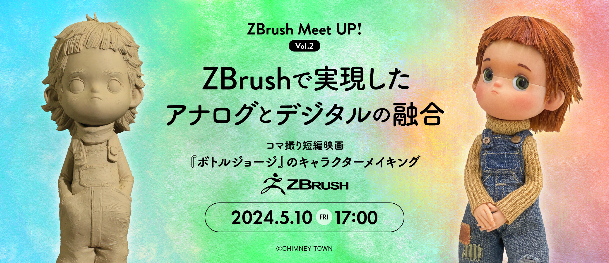 | 内容 | 【タイムスケジュール】 ◆ 17 : 00 - 17 : 05 ご挨拶・注意事項の説明 ◆ 17 : 05 - 17 : 10 コマ撮り短編映画『ボトルジョージ』とは? 『ボトルジョージ』の作品紹介をティザーやメイキングの上映をしつつ、ご紹介いただきます。 ◆ 17 : 10 - 17 : 30 キャラクター制作のワークフロー 人形制作全体のワークフローについて説明いただきます。過去のワークフロー時の苦労や効率化に向った背景の説明から、粘土原型→3Dスキャン→ボディやモールドのモデリング→金属関節の組み上げなど、最新のワークフローを発表! ◆ 17 : 30 - 18 : 20 ZBrushで実現したアナログ造形とデジタル造形の融合 人形アニメにおいて重要となる表情パーツ作りについてご紹介!粘土原型からスキャンされたデータをZBrush上で加工するワークフローの解説。ZBrush上での作業において気を付けるべきアナログの温かみを守る方法についてとモデリング方法。また、フルカラープリンターを使う上での着彩データの取り扱いについてご紹介いただきます。 ◆ 18 : 20 - 18 : 50 『ボトルジョージ』から導き出したキャラクター制作の答え (パネルディスカッション) アナログでの最終アウトプットを前提とした、デジタル技術との付き合い方や線引き・課題についてや、現在のトレンドから思うこと、アナログへの落とし込みから考える将来予想など、 Maxon Computer 成川大輔氏にもご参加いただき、パネルディスカッション形式でお話いただきます。質疑応答もこの時間で受け付けます。 ◆ 18 : 50 - 19 : 00 ボーンデジタルからのご案内 |